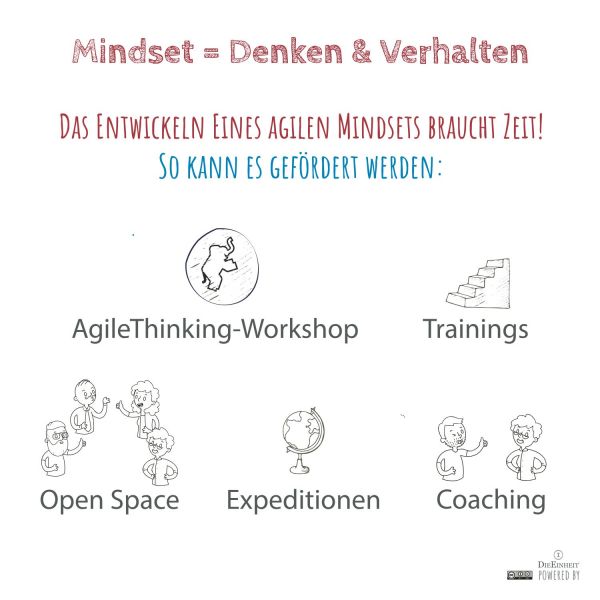 Wir haben die Erkenntnis, dass agiles Denken / agiles Mindset und agiles Handeln / agile Methoden Hand in Hand gehen und gleichwertig berücksichtigt werden müssen, um den Wandel hin zu einer agilen Organisation erfolgreich zu gestalten.