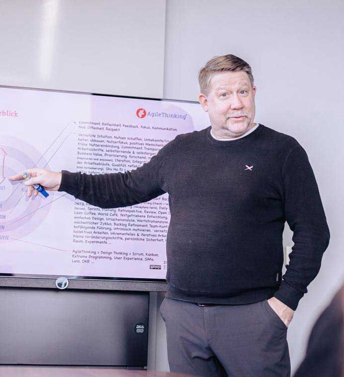 Als zertifizierter Agile Business Coach, Scrum Product Owner® und Inhaber der Marken AgileThinking® und DieEinheit® verfüge ich über umfassende Erfahrung in der Entwicklung und Umsetzung von Produktvisionen für verschiedene Branchen und Produkte/Dienstleistungen.